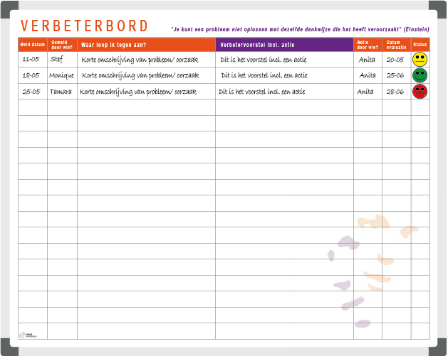 TnP is all about tailor-made solutions. We believe in the power of visual management, but not in standard solutions. Together with our customers such as you, we discuss the possibilities and we think about the final solution together, "a professional visualisation board." You make your wishes known and provide information about the final application; we contribute practical and user-friendly solutions. We also apply our knowledge of Lean and Visual Management to get the best results.